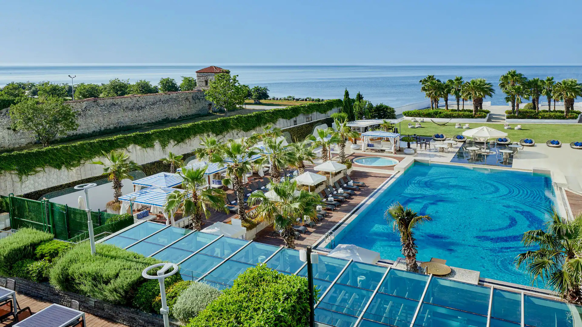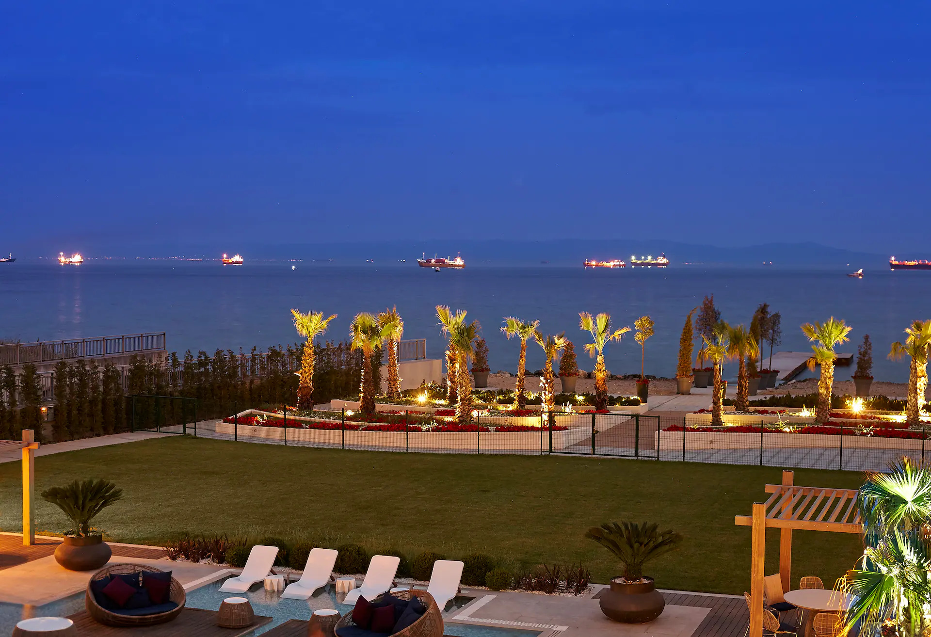 Marmara Denizi manzaralı, 3500 m2 büyüklüğündeki iç ve dış etkinlik alanlarında düğünlere, davetlere ve etkinliklere ev sahipliği yapan tesiste iş toplantılarınız için ise son teknoloji ekipmanlarla donatılmış ofis ve toplantı odalarından faydalanabilirsiniz.